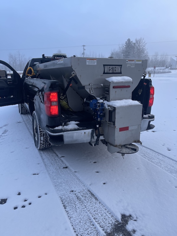 Snow removal services include driveway and parking lots, walkway and deck handwork, and occasionally roof clearing. We use full size pickup trucks with industrial plows, shovels, walk behind snowblowers, skid-steers, and heavy front-end loaders. Snow may be hauled away, pushed or blown to an area of the property as needed. We apply salt in some locations to help melt ice accumulations.